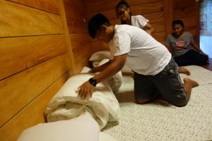 今日,北高雄家扶中心帶領社區青少年進入在地的特色餐廳「一山沐多納咖啡屋」,透過老闆精心的課程安排,讓青少年不只了解服務業,更是帶領青少年深入了解在地巷道商家,讓青少年更加熟悉自己的部落特色。老闆江美香帶領青少年認識咖啡,讓青少年實際動手煮咖啡與甜點,更大方讓青少年擔任一日店員,為當天上門的顧客服務,將實際所學付諸於行動。出席餐飲培力課程的成員小藍笑著說:「在活動中,是我製作愛玉的初體驗,從刮愛玉籽到洗愛玉及最後調配出一碗清涼又可口的愛玉,甚至親手將自己製作的愛玉端至客人面前,這是我未曾有過的體驗,感覺很新鮮特別」。參與一系列培力課程的成員也期許自己未來可以成為專業導覽解說員或是民宿業者甚至是餐廳老闆,能為自己的社區盡一份心力,同時也期待下半年度的培力課程。